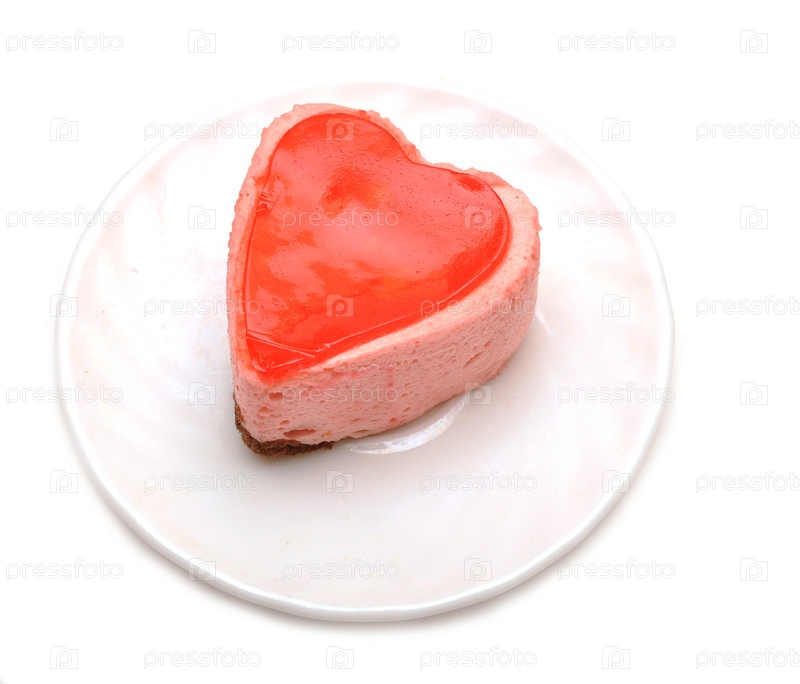 Пирожное в форме сердца на блюдце