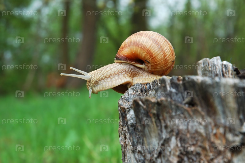 Большая улитка на пеньке
