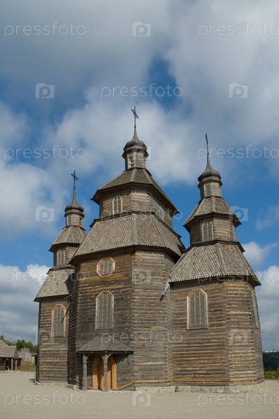 Деревянная церковь в старой деревне Запорожье, остров Хортица, Украина
