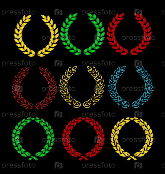Набор цветных лавровых венков на черном фоне