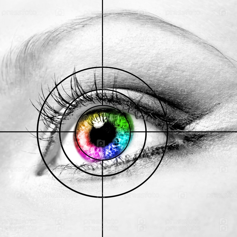 Крупным планом красочный человеческий глаз и цель