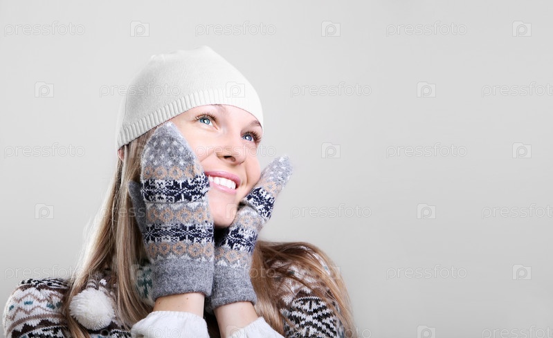 Красивая молодая девушка в шапке, перчатках улыбается