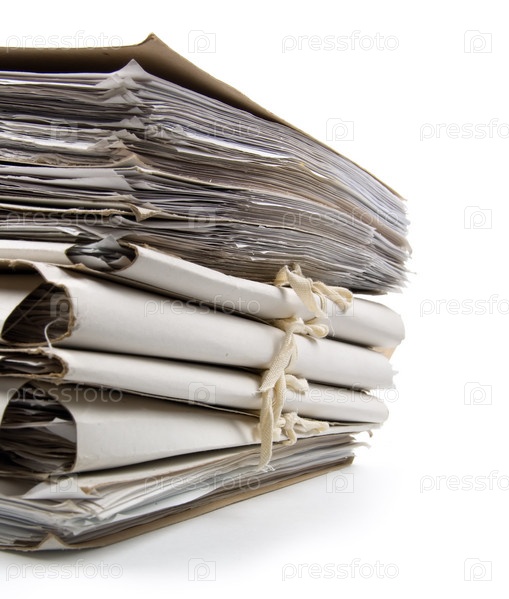 Куча бумажной работы на белом фоне