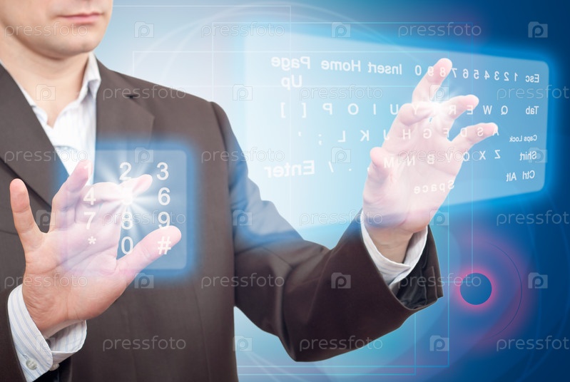 Руки нажимающие кнопки на сенсорном экране. Две виртуальные клавиатуры