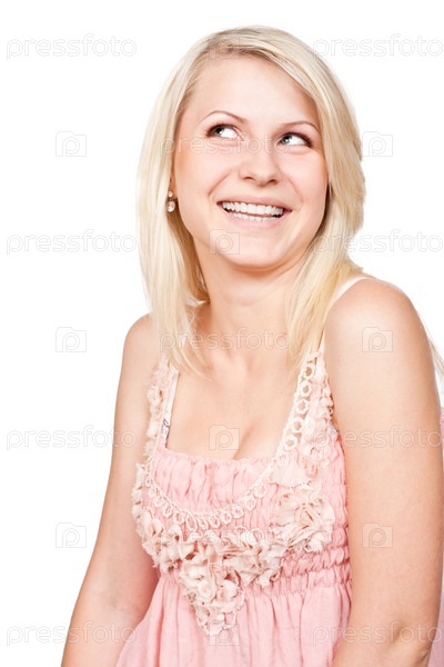 Улыбающаяся блондинка смотрит вверх