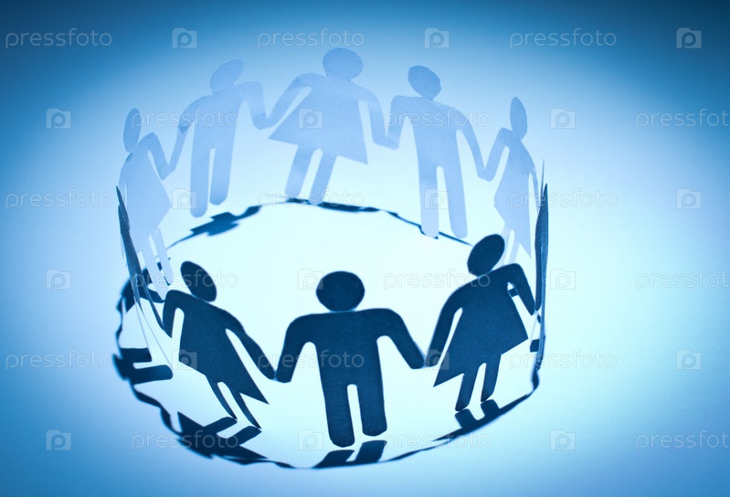 Люди из бумаги держатся за руки. Концепция социальных сетей