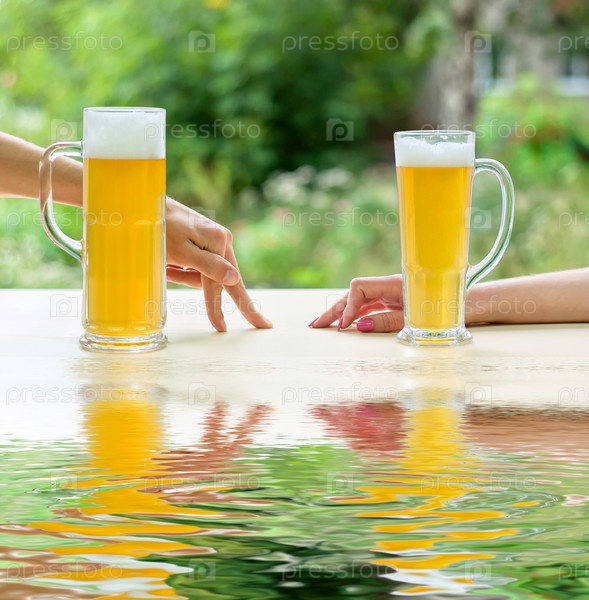 Руки мужчины и женщины с бокалами пива