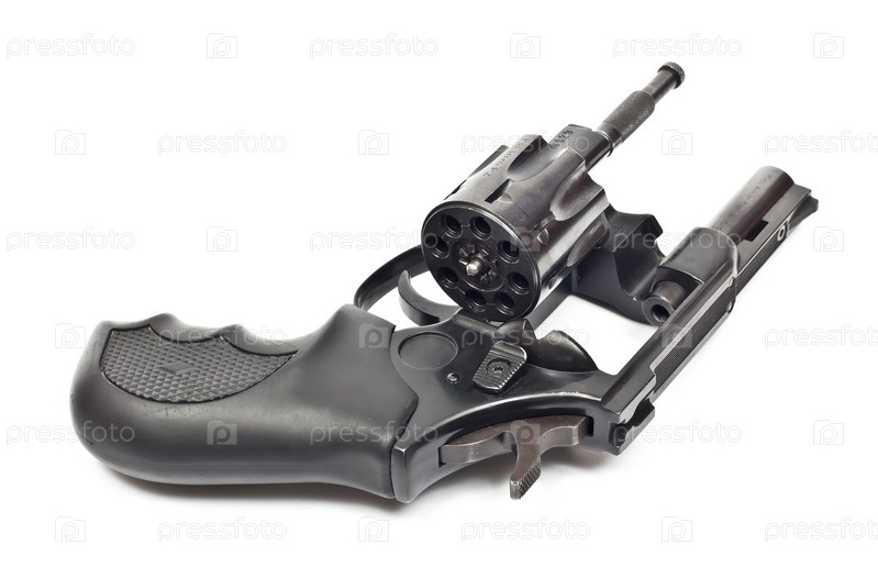 Черный револьвер на белом фоне