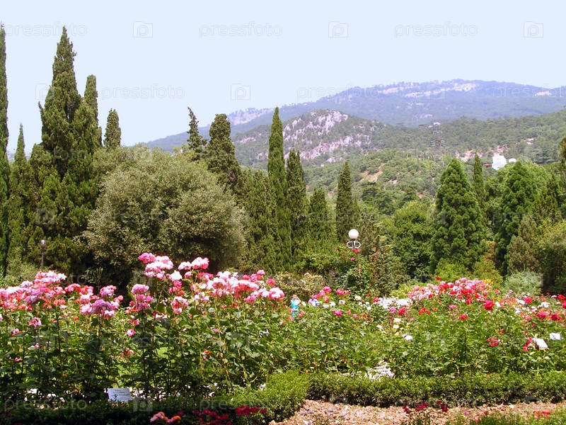 Цветочный клумб и розарий в ботаническом саду