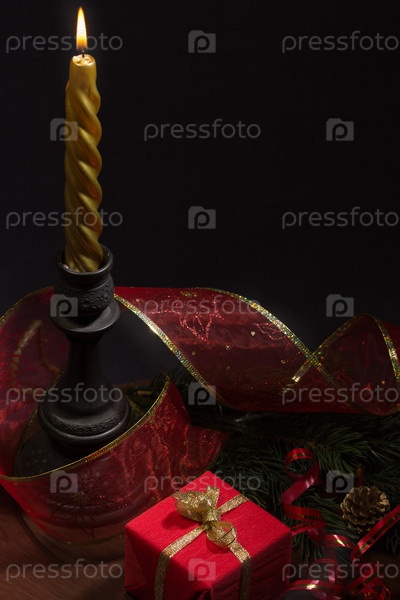 Рождественский натюрморт с украшениями и подарками