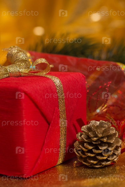 Рождественский натюрморт с украшениями и подарками