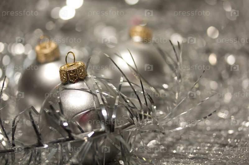 Рождественский натюрморт с мишурой и шарами в серебристых тонах