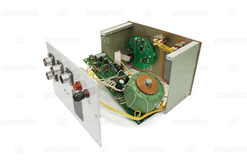 Электронное устройство в разобранном виде, изолированное на белом фоне