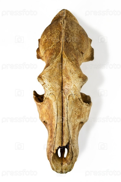 Старый собачий череп на белом фоне