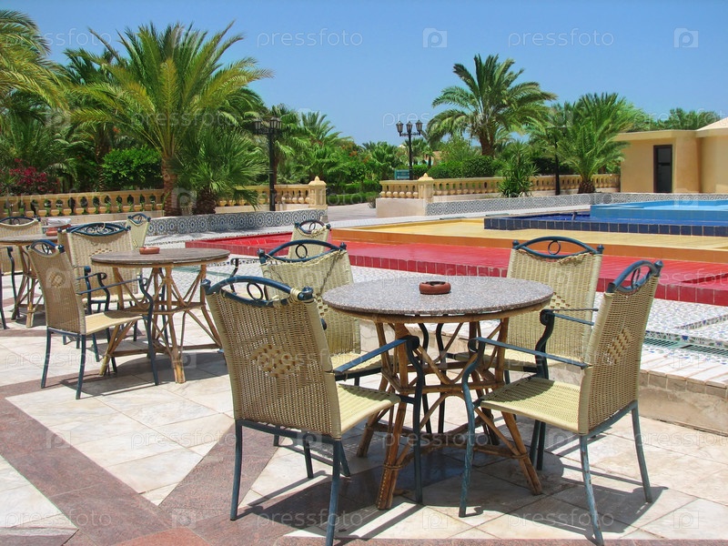 Столы и стулья на территории отеля