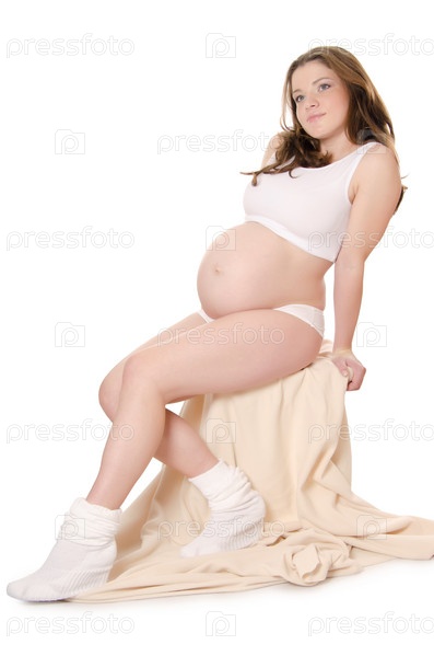 Беременная женщина на белом фоне