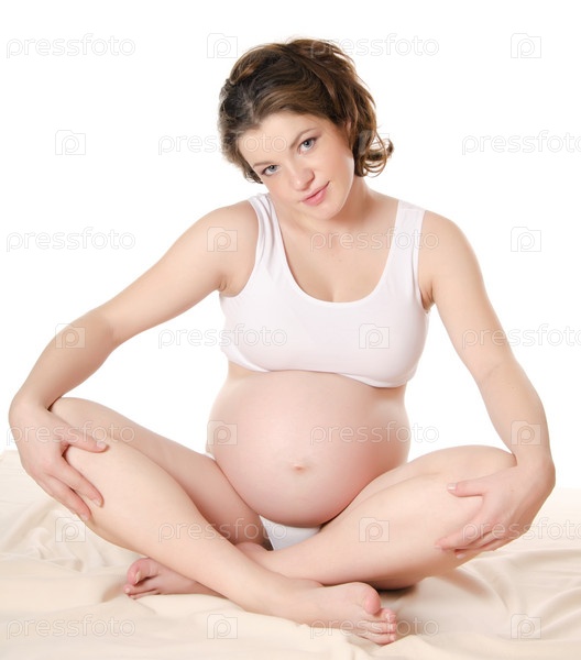 Беременная женщина на белом фоне