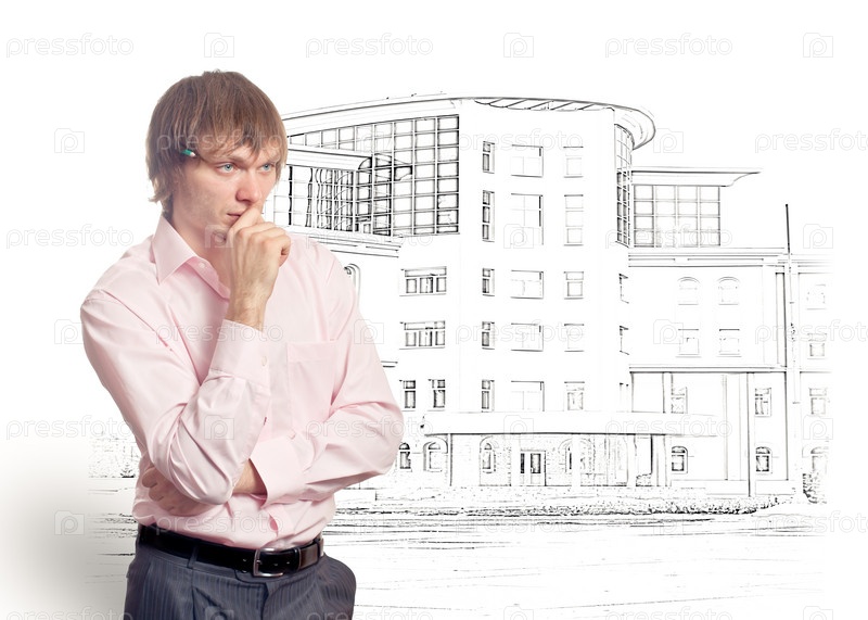 Архитектор у эскиза современного здания
