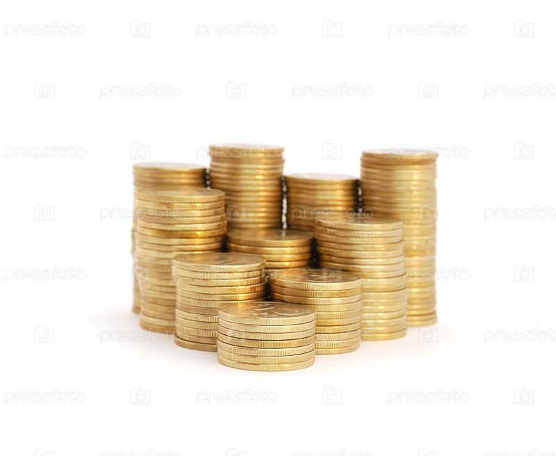 Стопка монет на белом фоне