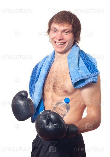 Молодой мужчина в боксерских перчатках
