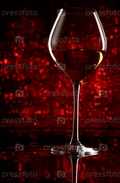 Бокал с вином на красном фоне