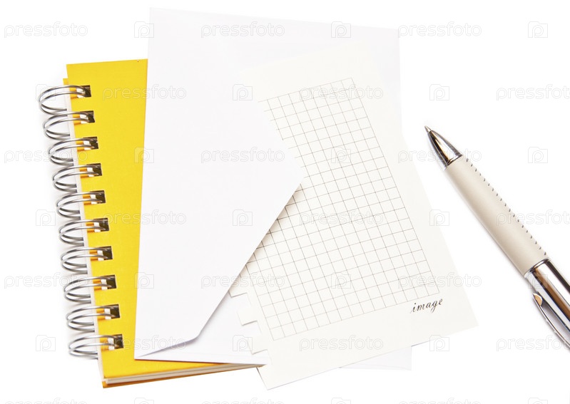 Лист из блокнота, конверт и ручка