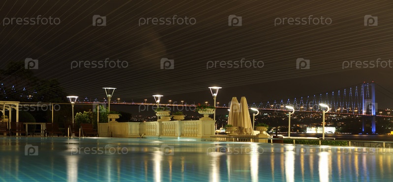 Ночной вид на Босфорский мост в Стамбуле, Турция