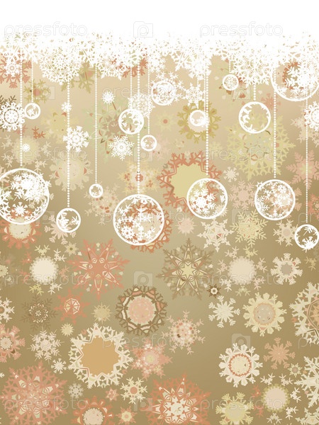 Шарики из снежинок висят на коричневом фоне