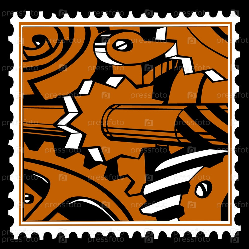 Марка с изображением старого механизма