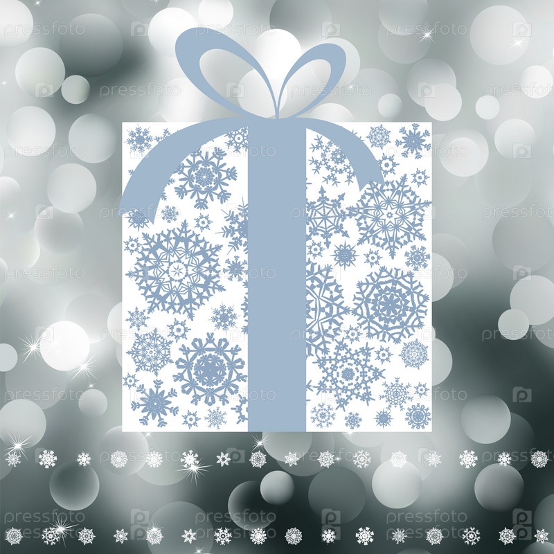 Подарочная коробка из снежинок на сером фоне