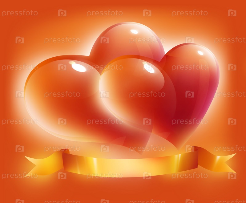 Два объемных сердечка на красном фоне