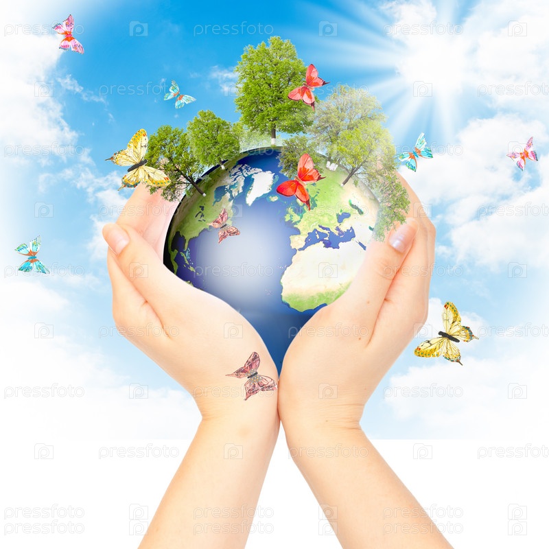 Руки и Земля. концепция сохранения зеленой планеты. Символ защиты окружающей среды