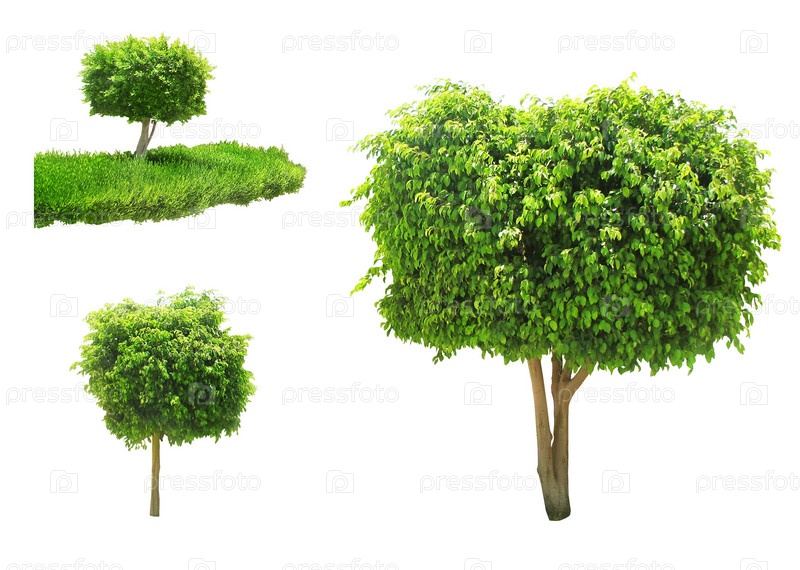 Раскидистое зеленое дерево на белом фоне