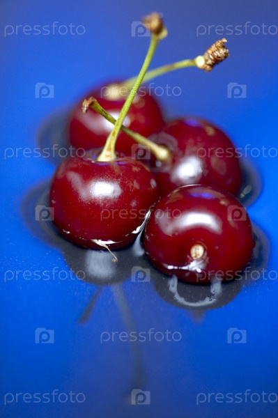 Объект на синем - пищевая вишня в воде
