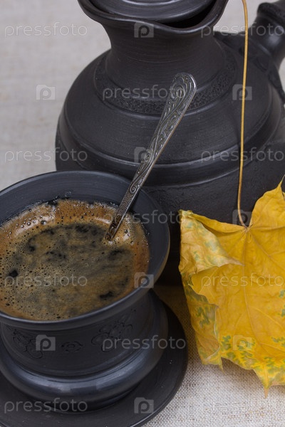 Чашка кофе и осенний лист