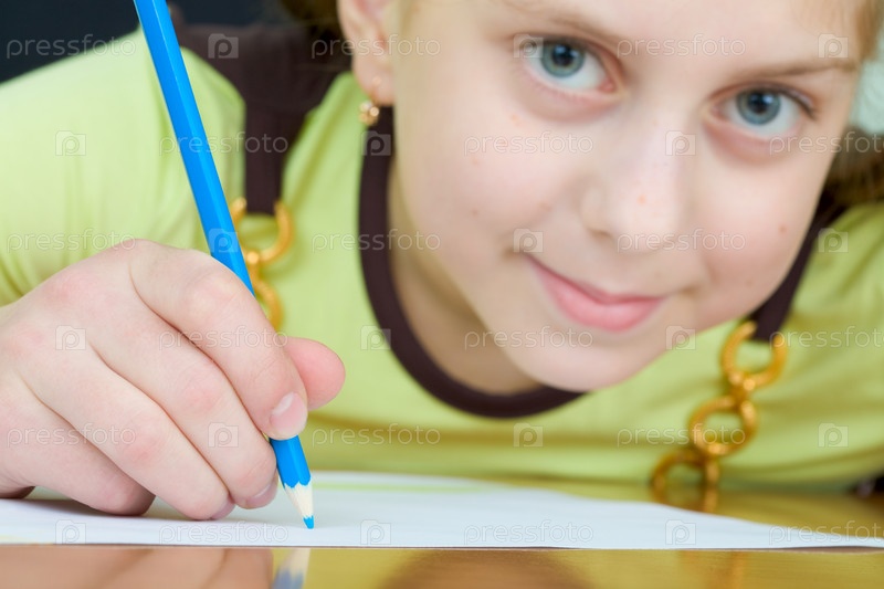 Маленькая девочка рисует карандашом