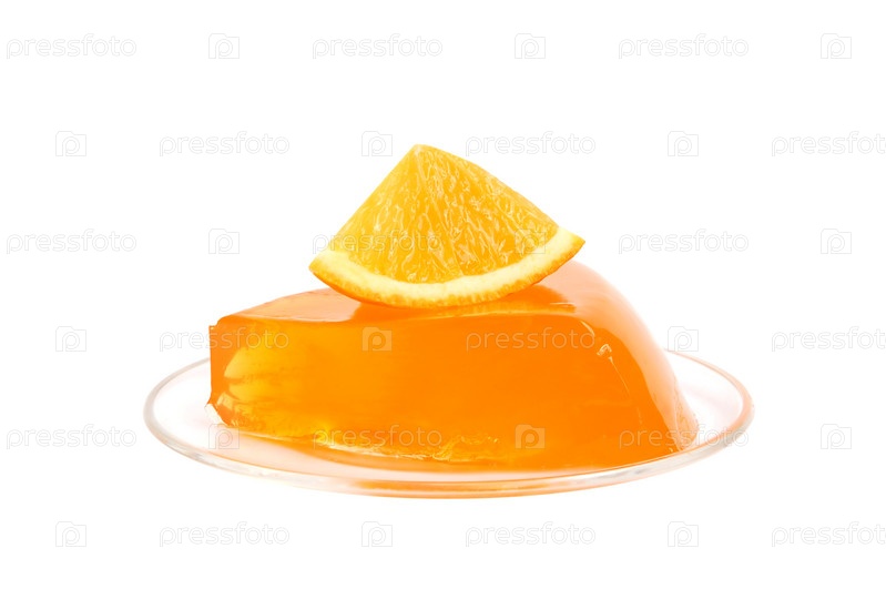 Оранжевое желе с долькой апельсина на белом фоне