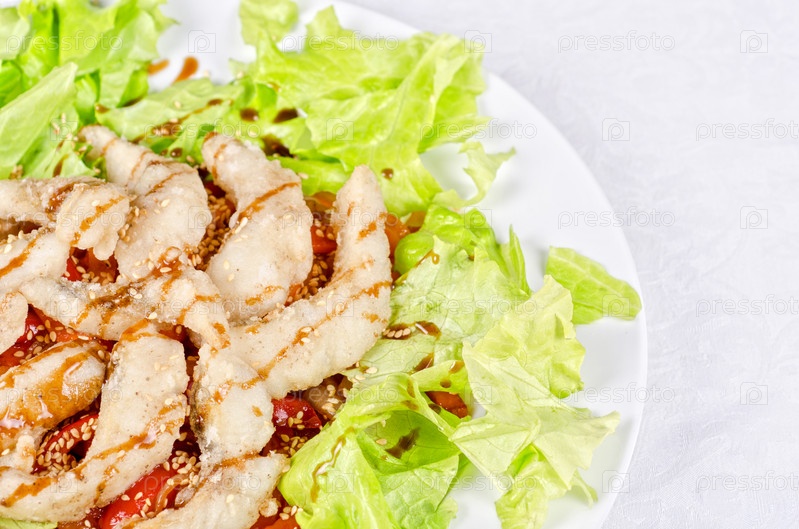 Блюдо из жареного филе судака с овощами