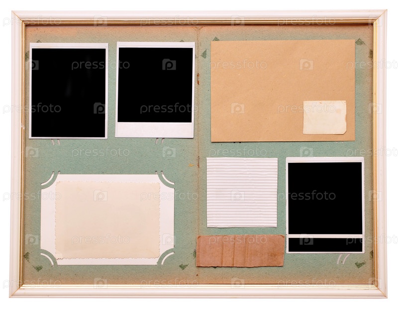 Старинный фотоальбом с пустыми фотографии на белом