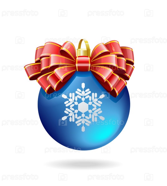 Бант из блестящей красной ленты на елочной игрушке