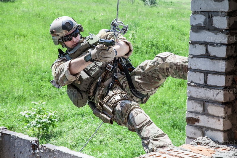 Спуск по веревкам с оружием