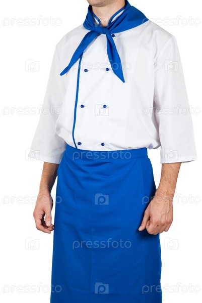 Повар в синей форме крупным планом на белом