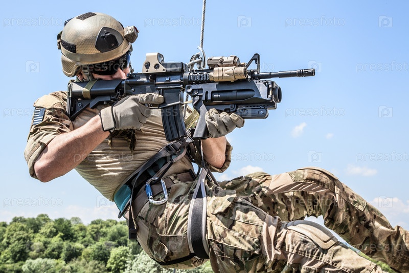 Спуск по веревкам с оружием