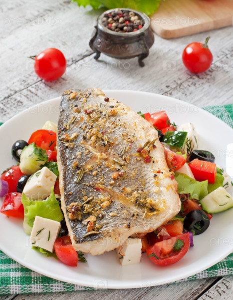Рыба и салат из свежих овощей
