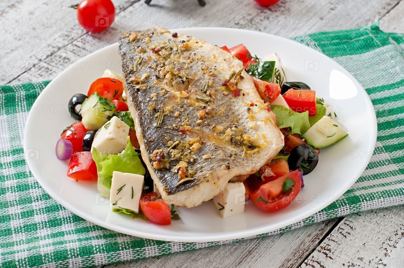 Рыба и салат из свежих овощей