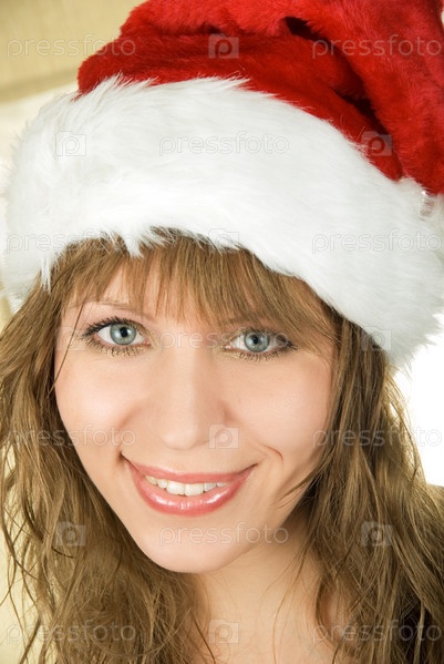 Счастливая женщина в шапке Санта-Клауса