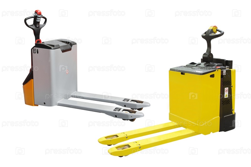 Самоходные погрузчики на белом фоне