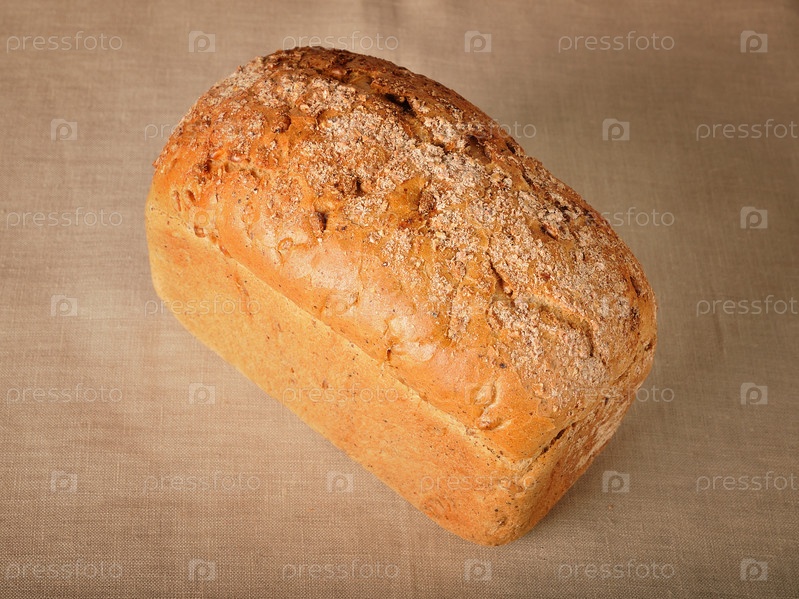 Хлеб с зернами на фоне холста