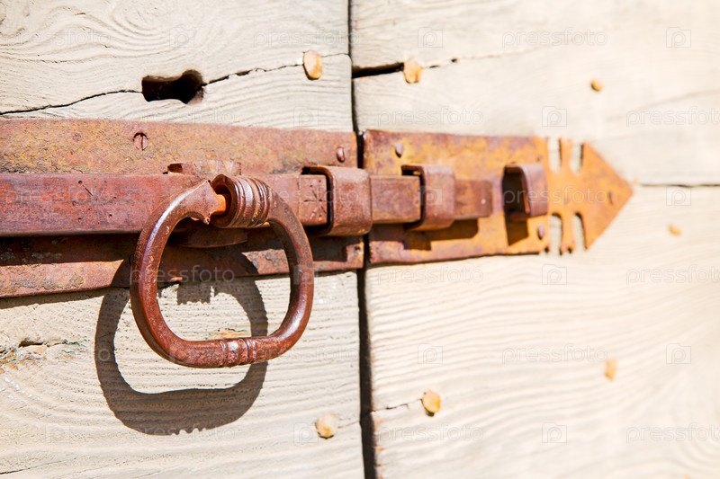 Ржавая задвижка на деревянных дверях