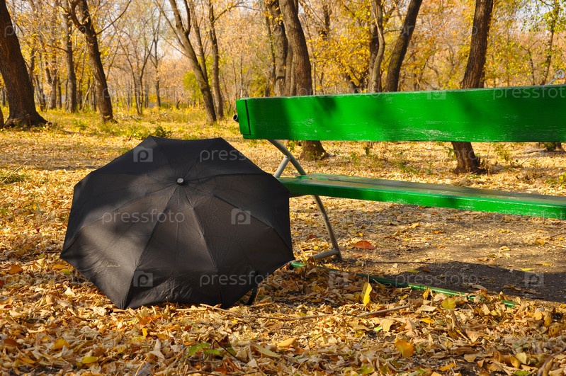 Черный зонт на осенней листве